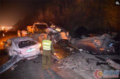 失控大罐車追撞18輛小車致8死26傷現(xiàn)場慘烈 救援現(xiàn)場 2013年12月8日下午4時(shí)許,成自瀘高速自貢往成都方向仁壽段(距仁壽出口33公里處)突發(fā)一起慘烈車禍,19輛車連環(huán)追尾相撞,不同程度損毀。據(jù)仁壽消防部門獲悉,目前現(xiàn)場救援已經(jīng)結(jié)束,事故已造成8死26傷。目...