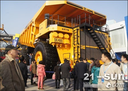 此次寶馬展上,徐工成功推出DE400礦用卡車。DE400是由徐州工程機械研究院研制生產(chǎn),是目前全球載重量最大的礦用卡車,載重量可達400公噸,最高速度50km/h,舉升時間24s。采用先進的交流電傳動系統(tǒng),原裝進口環(huán)保電控高性能柴油發(fā)動機,動力強勁。箱形截面結(jié)構(gòu)車架,由高強度優(yōu)質(zhì)合金鋼板和鑄鋼件制造。智能制動技術(shù),防止誤操作。符合人機工程學(xué)的駕駛室舒適安全。整車配備自動稱重系統(tǒng)、集中滅火系統(tǒng)、快速注油系統(tǒng)、自動潤滑系統(tǒng)及各種安全設(shè)備,保證整車運行安全高效。
